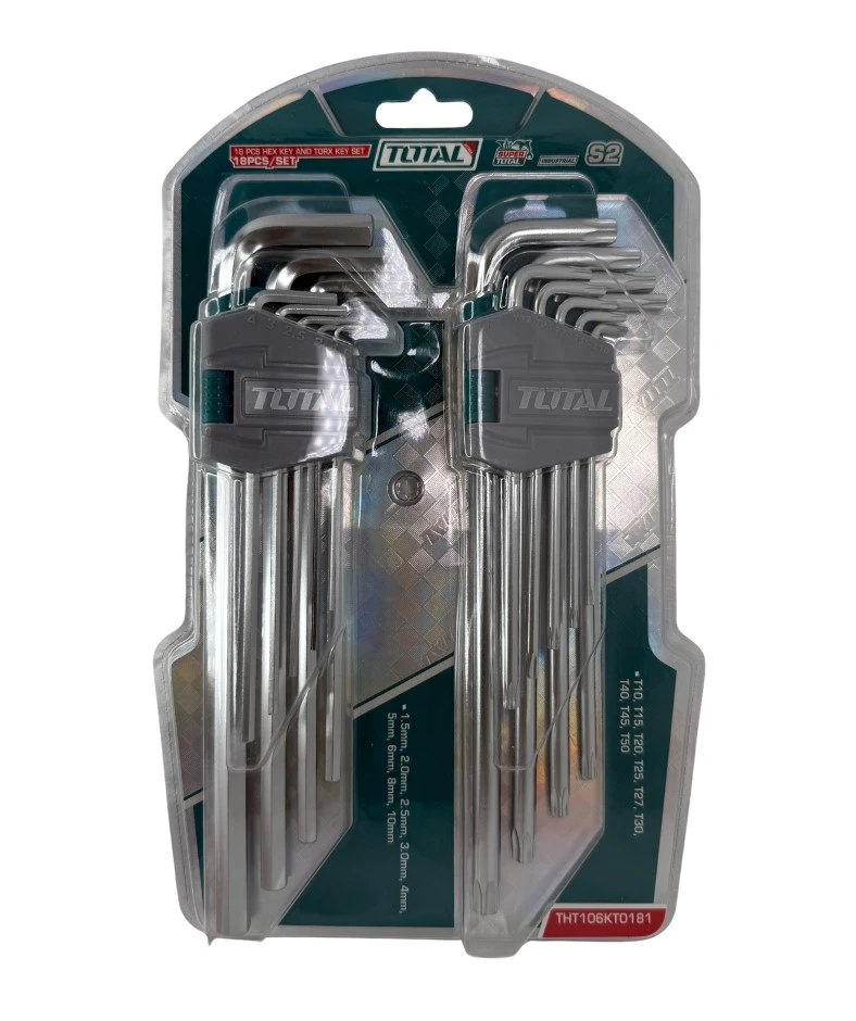 Optimiza cada reparación con este kit profesional de 18 piezas marca Total, que combina llaves Bristol (Allen) y Torx para brindarte precisión, fuerza y durabilidad en cada trabajo. Ideal para técnicos, mecánicos, electricistas y amantes de las herramientas de alto rendimiento.