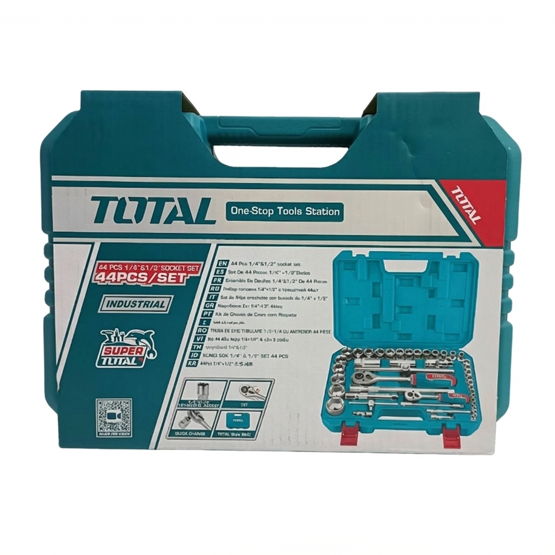 Aumenta tu productividad en cada reparación con este juego completo de 44 piezas Total Tools, diseñado para brindar potencia, precisión y versatilidad. Ideal para mecánicos, técnicos, talleres y uso profesional, gracias a su combinación de copas y accesorios en cuadrantes de 1/4″ y 1/2″.